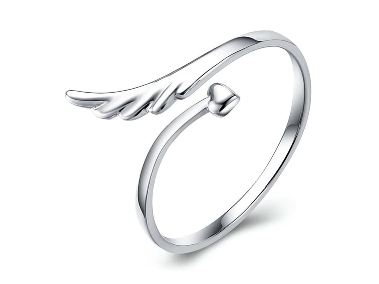 Excelente anillo con forma de ala, bañado plata 925 de excelente calidad y finas terminaciones, incluimos de regalo elegante cajita de terciopelo totalmente gratis con su compra.