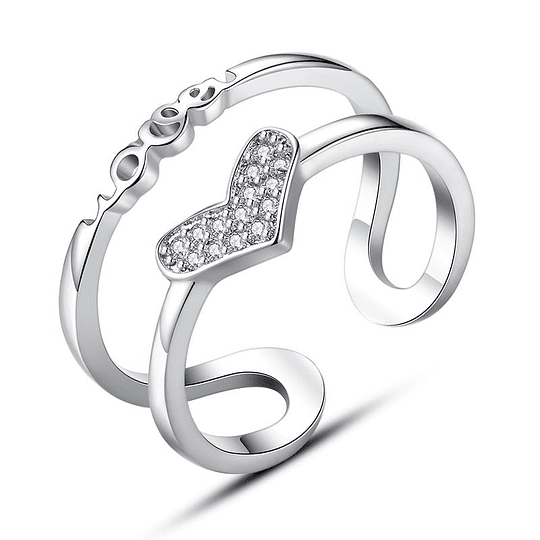 Anillo Corazon Doble Arco Circones Plateado