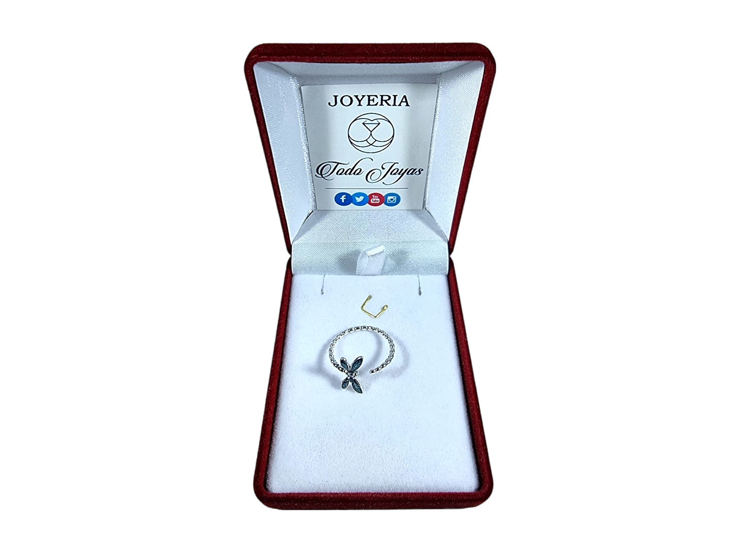 Excelente anillo con forma de libélula, novedoso y exclusivo modelo, talla regulable todo en plata 925 de excelente calidad y finas terminaciones, además decorado con hermosos micro circones verdes oscuros, incluimos de regalo elegante cajita de terciopelo totalmente gratis con su compra.