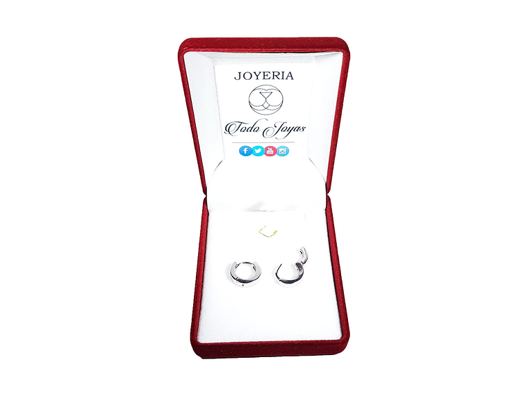 Excelente par de aros fabricados en aleación bañados en plata 925, estilo argolla, finas terminaciones y de gran calidad, incluimos de regalo elegante cajita de regalo totalmente gratis con su compra.