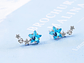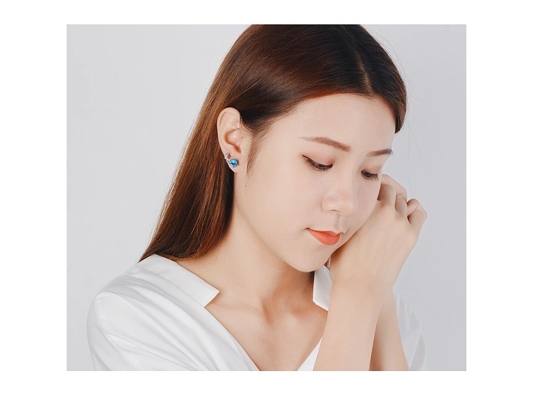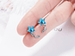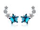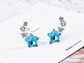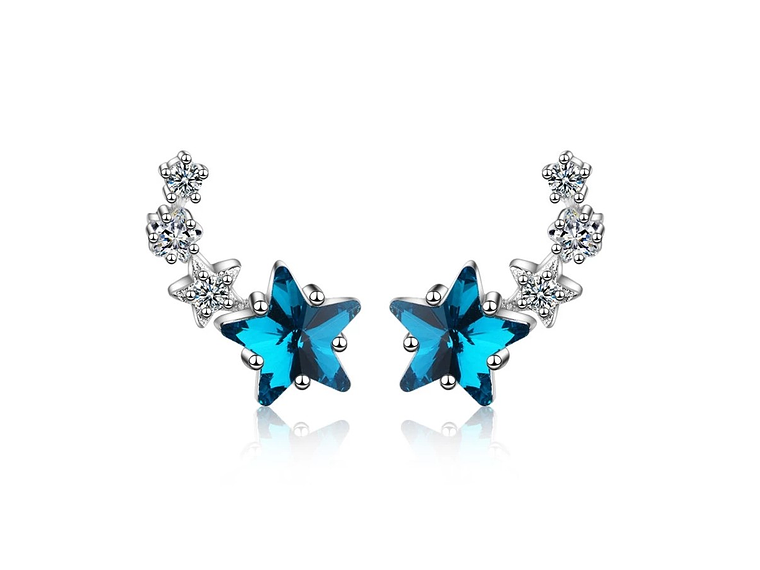 Excelente y elegante par de aros estilo pasador con forma de estrella azul y pequeñas estrellas en circones bancos, modelo exclusivo, Bañado en plata de excelente calidad y terminaciones mejoradas, decorado con hermosos circones, medida de los aros: 17x8mm, incluimos de regalo elegante cajita de terciopelo totalmente gratis con su compra.