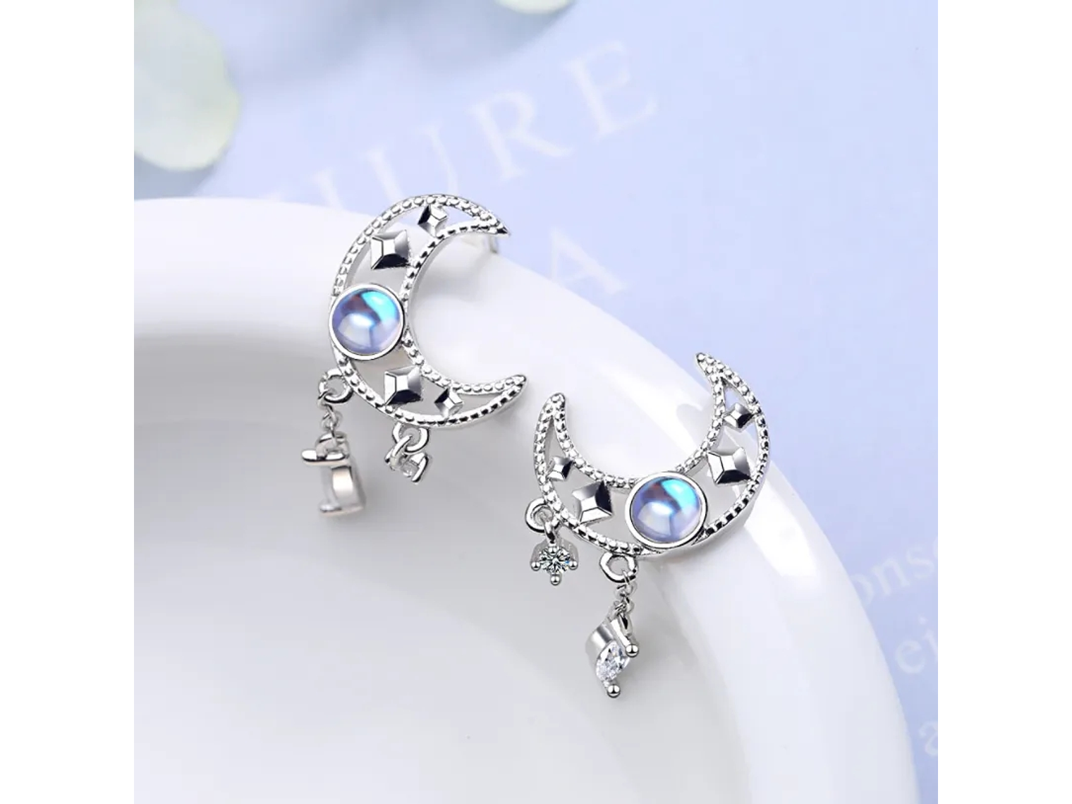 Excelente y elegante par de aros estilo pasador con forma de Luna Circón Lunar Plateado, todo bañado en plata de excelente calidad y finas terminaciones, medida de los aros: 26x12mm, incluimos de regalo elegante cajita de cartón para joya totalmente gratis con su compra.
