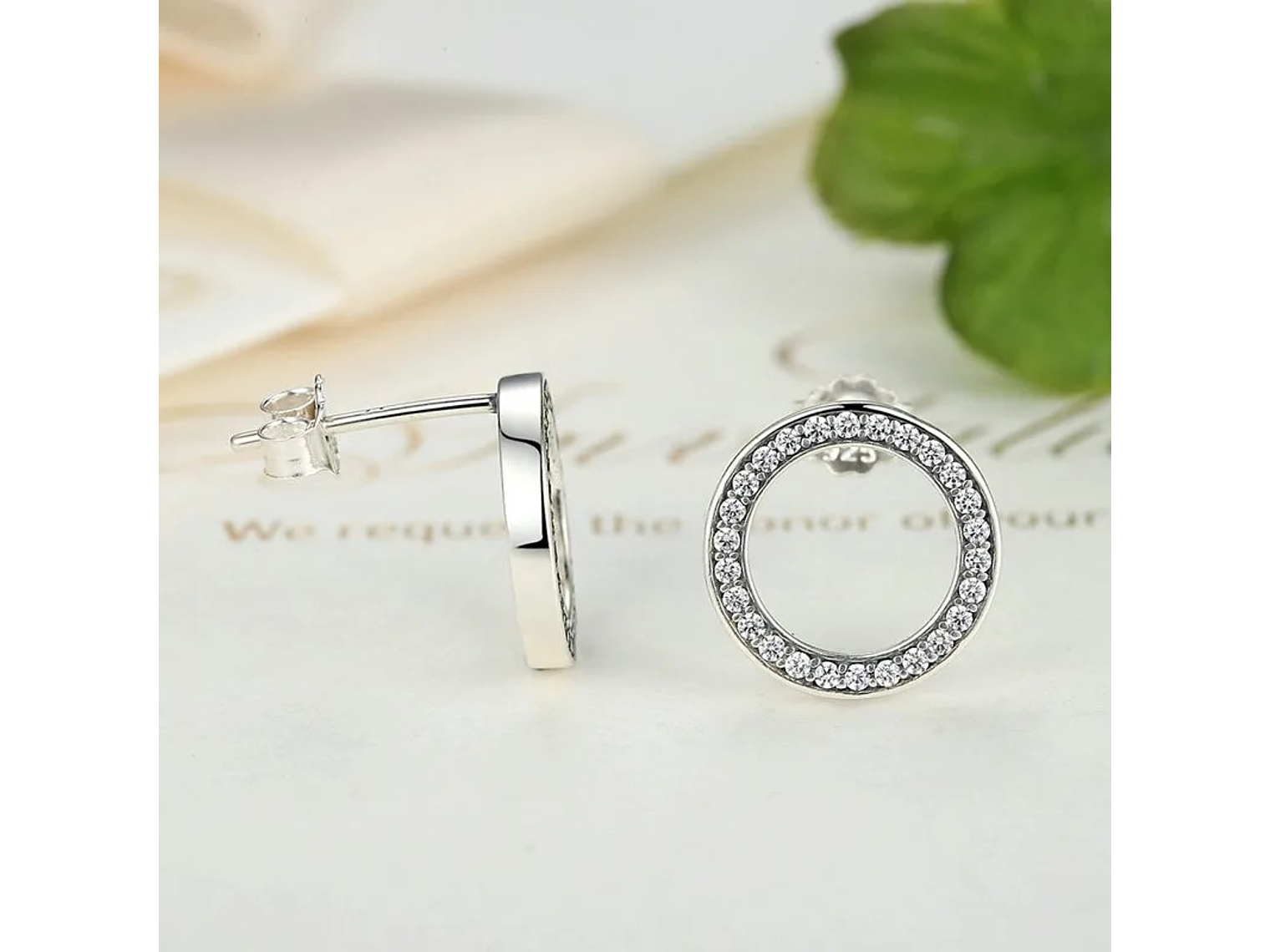 Excelente y elegante par de aros estilo pasador con forma de Circulares con Circones exclusivo y novedoso modelo, decorado con hermosos circones brillantes, todo en plata 925 de excelente calidad y finas terminaciones, medida de los aros: 11x11mm aprox, incluimos elegante cajita para joya de cartón totalmente gratis con su compra.
