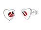 Excelente y elegante par de aros estilo pasador con forma de corazón blanco con mariquita, todo en plata 925 de excelente calidad y finas terminaciones, medida de los aros: 9x9mm, incluimos de regalo elegante cajita en cartón totalmente gratis con su compra.