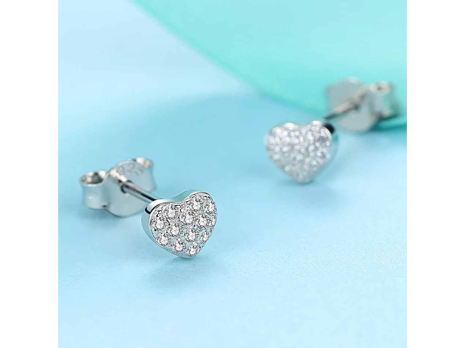 Excelente y elegante par de aros estilo pasador con forma de corazones decorados con hermosos micro circones blancos todo en plata 925 de excelente calidad y finas terminaciones, medida de los aros: 3x4mm, incluimos de regalo elegante cajita de terciopelo totalmente gratis con su compra.