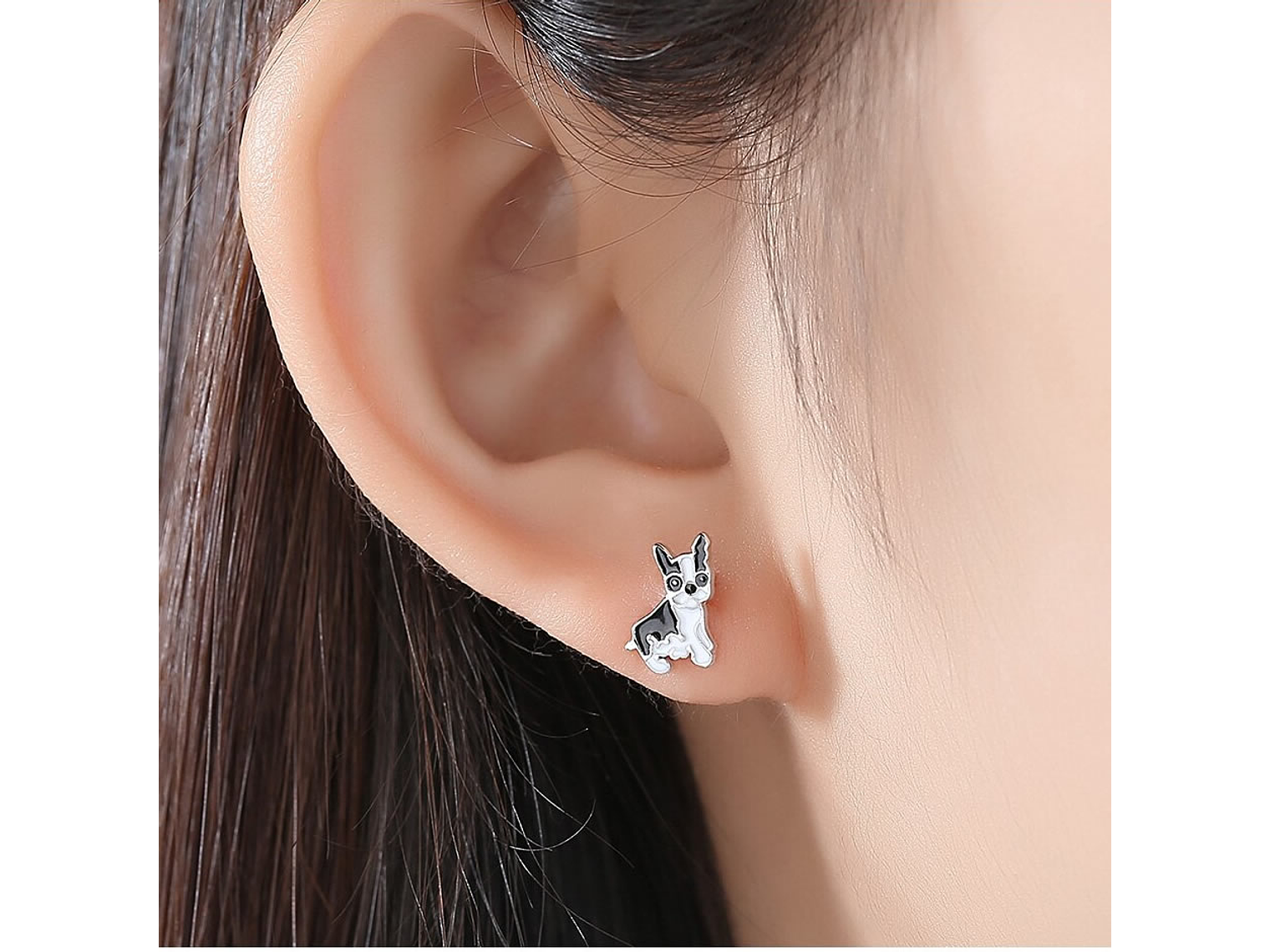 Excelente y elegante par de aros estilo pasador con forma de perrito Bulldog Frances, todo en plata 925 de excelente calidad y finas terminaciones, medida de los aros: 10x7mm, incluimos de regalo elegante cajita en carton totalmente gratis con su compra.
