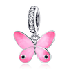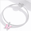 Hermoso y elegante charm con forma de mariposa rosada en plata 925 de primera ley y cristales, 100% compatible con pulseras de charm. Incluimos de regalo elegante cajita de cartón totalmente gratis con su compra.
