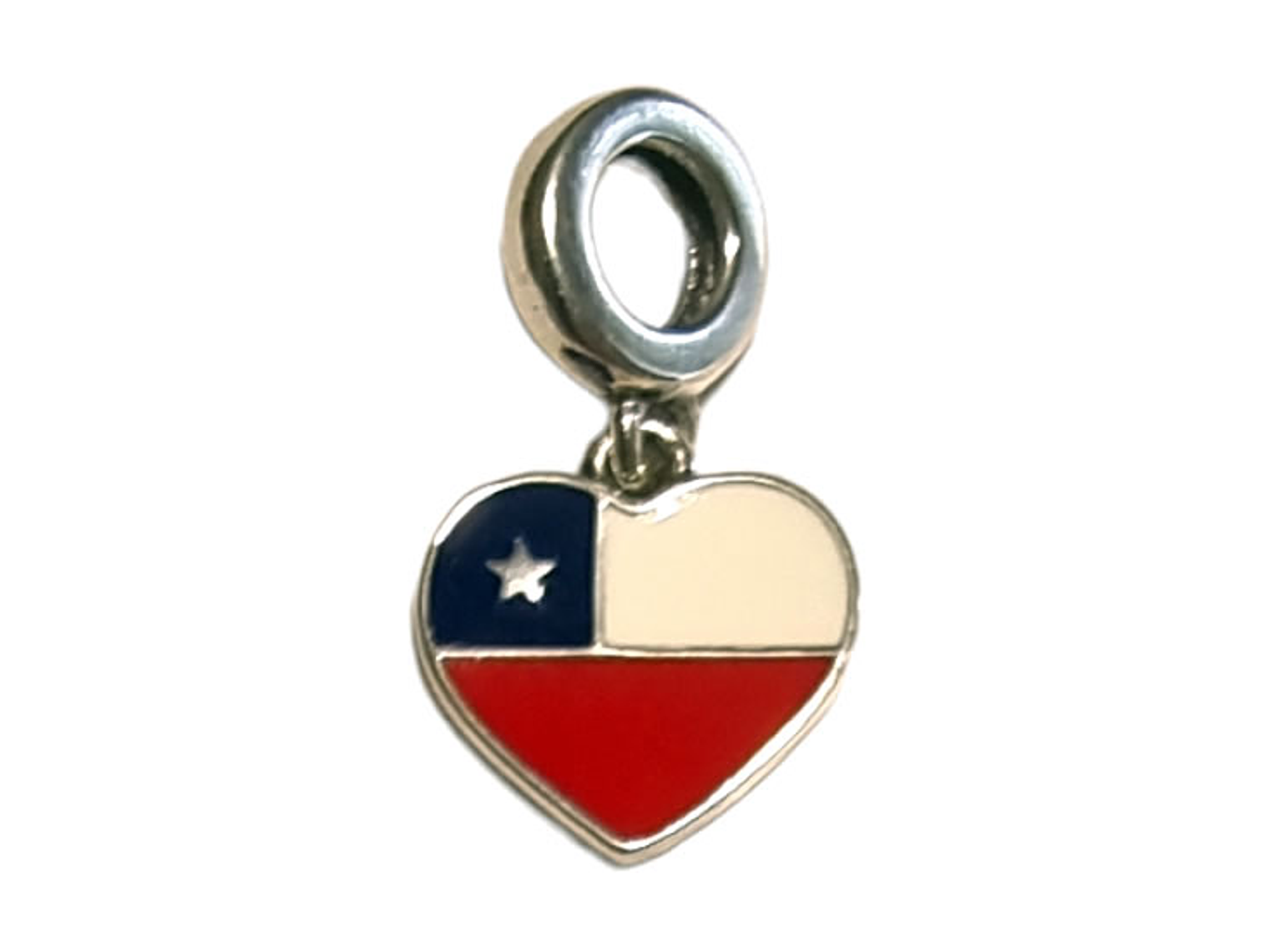 Hermoso y elegante charm con forma de Corazón Bandera Chilena fabricado en plata 925 de primera ley y cristales, 100% compatible con pulseras de charm. Incluimos de regalo elegante cajita de cartón totalmente gratis con su compra.