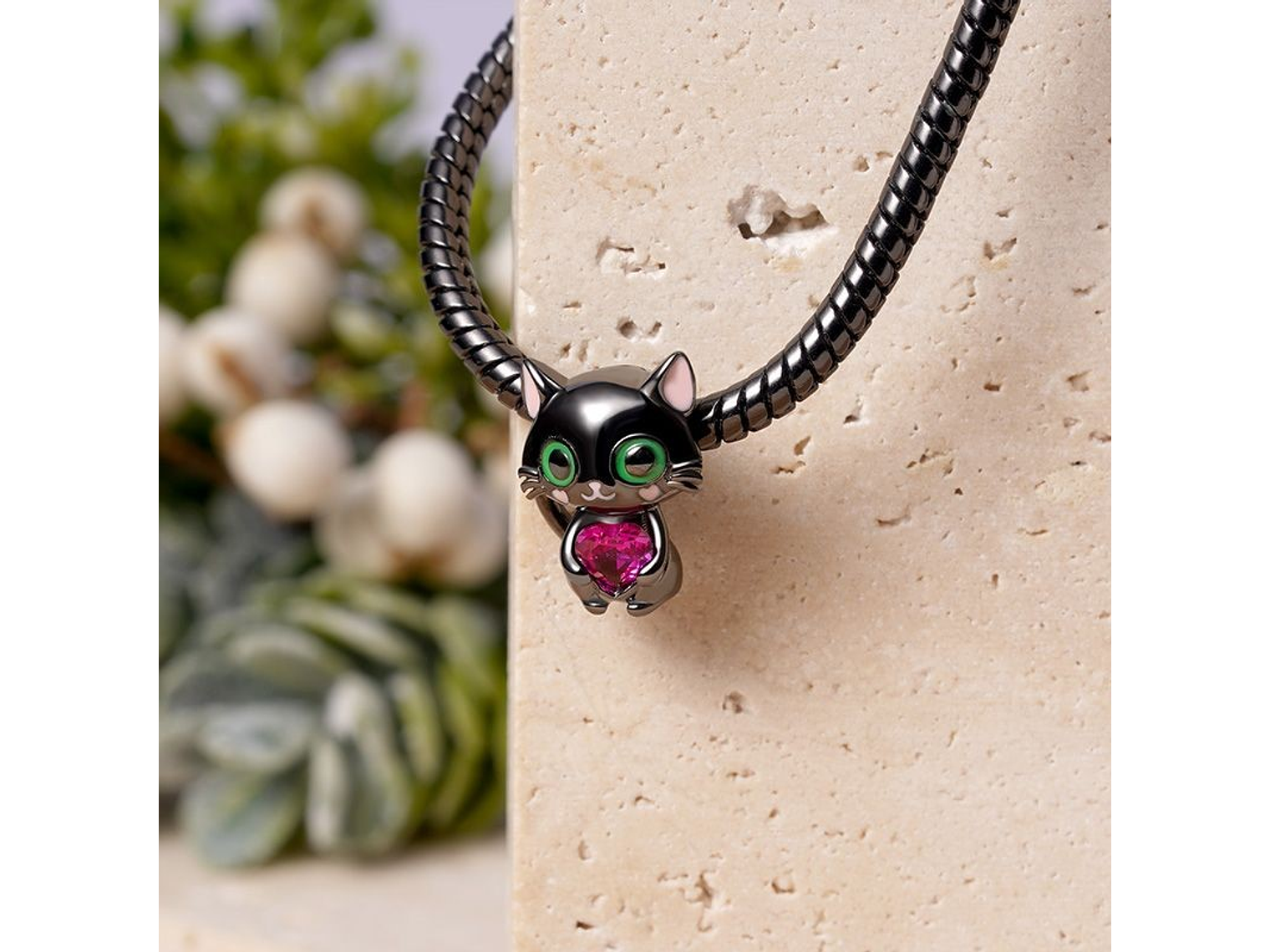 Hermoso y elegante charm con forma Gato Negro Love fabricada en plata 925 de primera ley y cristales, 100% compatible con pulseras de charm. Incluimos de regalo elegante cajita de cartón totalmente gratis con su compra.