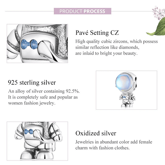 Hermoso, elegante y exclusivo Charm con forma de Astronauta Lunar decorado con hermosos circones de alta calidad y brillo, fabricado en plata 925 excelente calidad y finas terminaciones, incluimos de regalo elegante cajita de regalo estándar totalmente gratis con su compra.