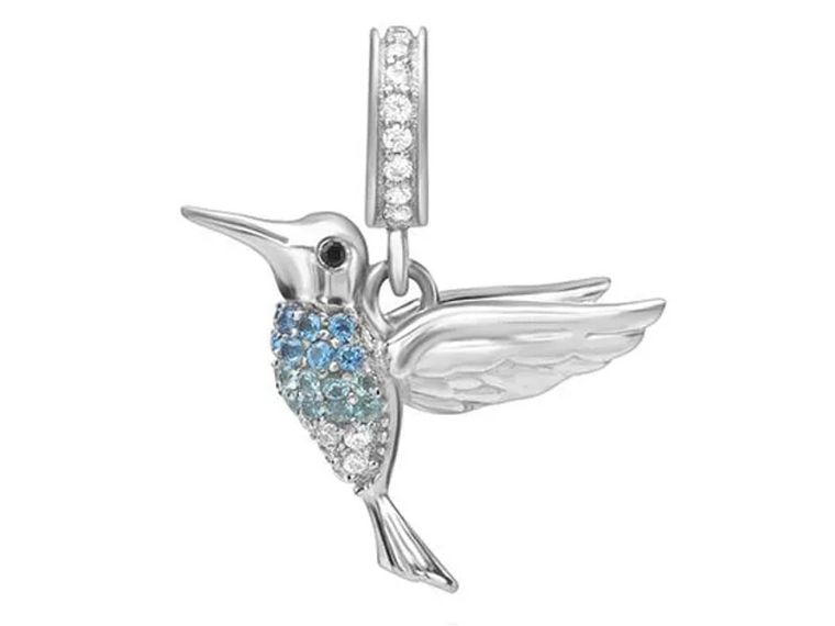 Hermoso, elegante y exclusivo Charm con forma de ave o colibrí plateado, fabricado en plata 925 excelente calidad y finas terminaciones, decorados con circones CZ de excelente calidad y brillo, incluimos de regalo elegante cajita de regalo estándar totalmente gratis con su compra.