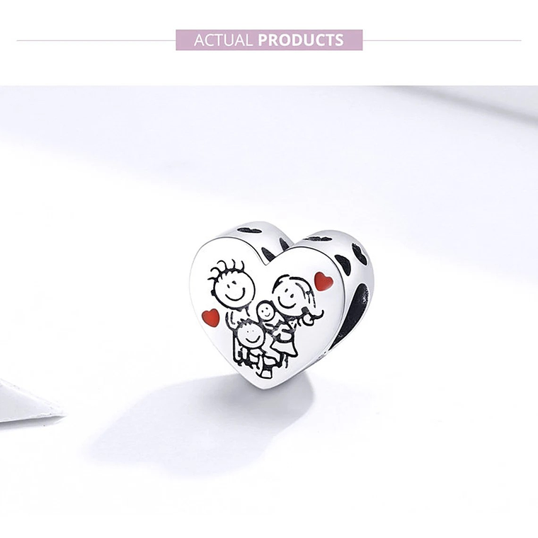 Hermoso, elegante y exclusivo Charm con forma de Corazón Familia Love esmaltado, fabricado en plata 925 excelente calidad y finas terminaciones, incluimos de regalo elegante cajita de regalo estándar totalmente gratis con su compra.