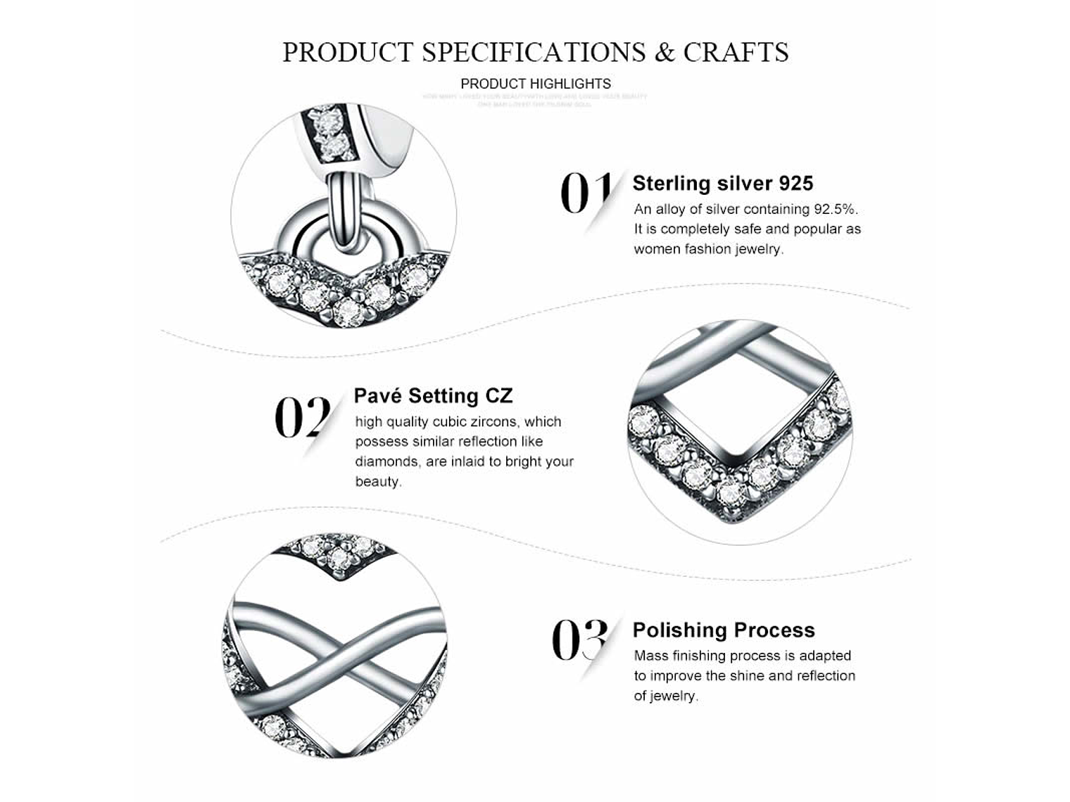 Hermoso y elegante Charm con forma de corazón infinito, amor infinito, fabricado en plata ley 925, excelente calidad y terminaciones, incluimos de regalo elegante cajita de regalo en cartón totalmente gratis con su compra.