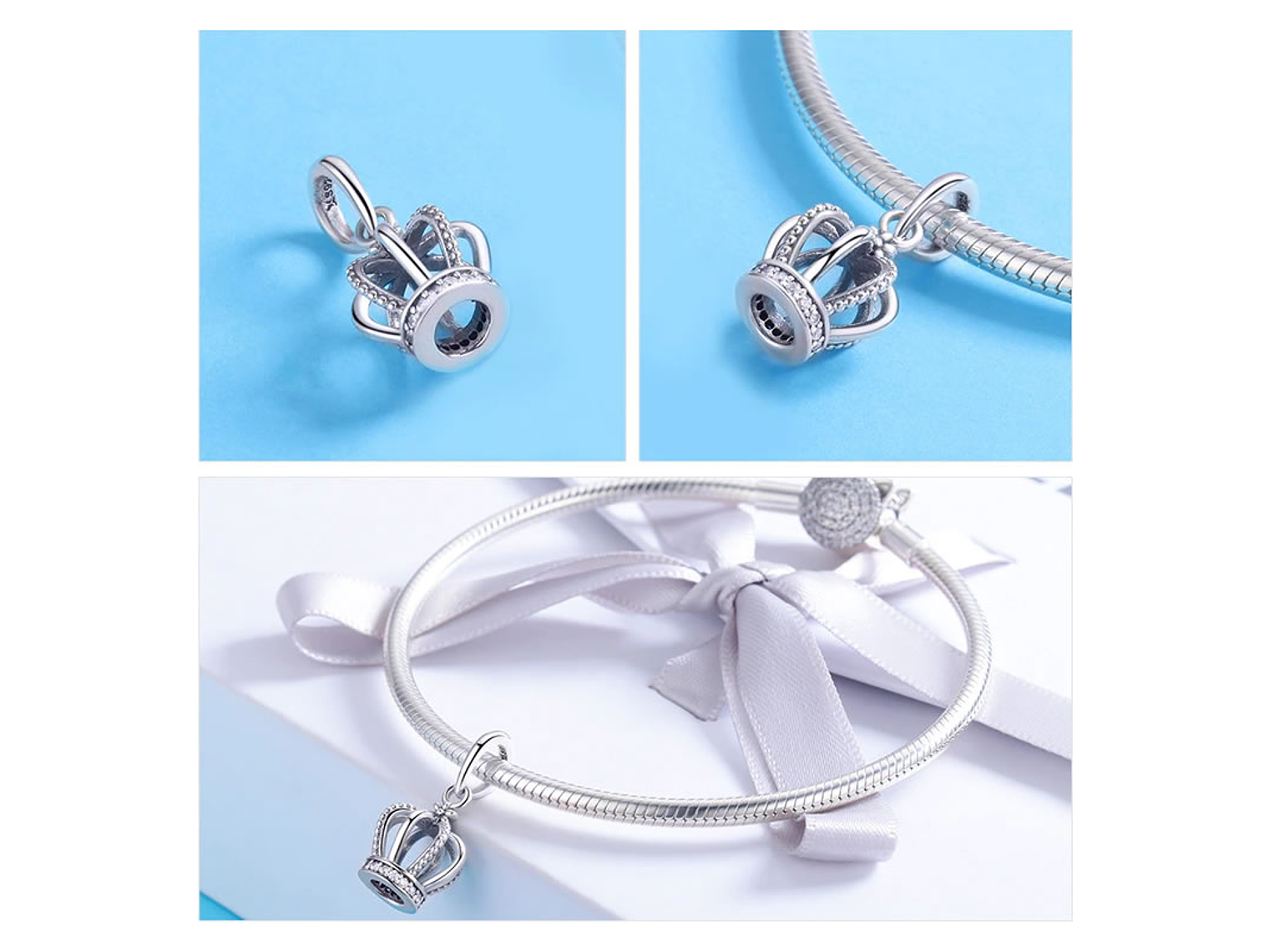 Hermoso, elegante y exclusivo Charm con forma de corona de princesa, fabricado en plata ley 925 excelente calidad y terminaciones, decorados con circones CZ de excelente calidad y brillo, incluimos de regalo elegante cajita de regalo estándar totalmente gratis con su compra.