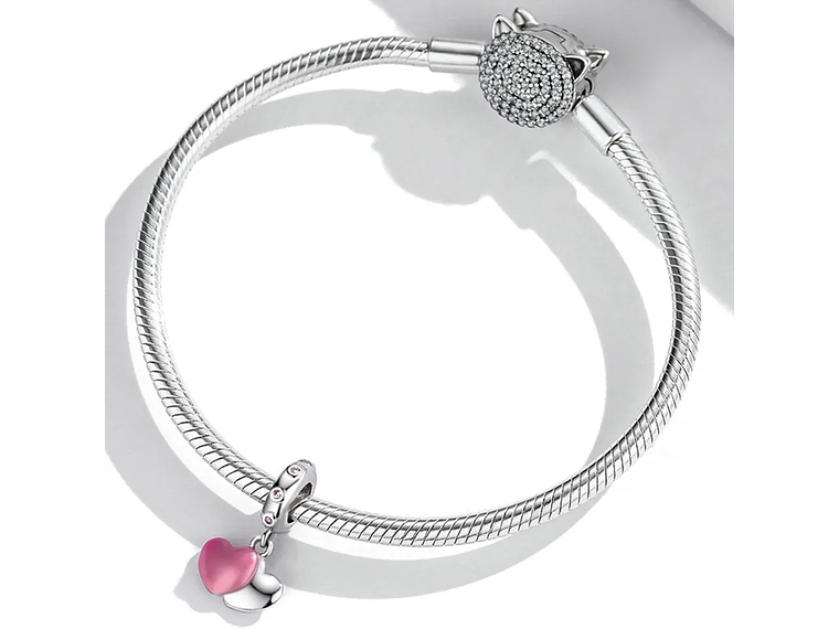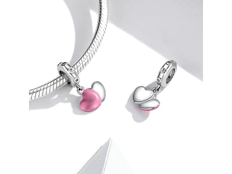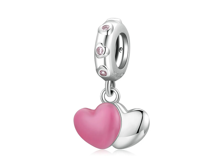 Hermoso, elegante y exclusivo Charm con forma de Doble Corazón Rosa Silver fabricado en plata 925 excelente calidad y finas terminaciones, incluimos de regalo elegante cajita de regalo estándar totalmente gratis con su compra.