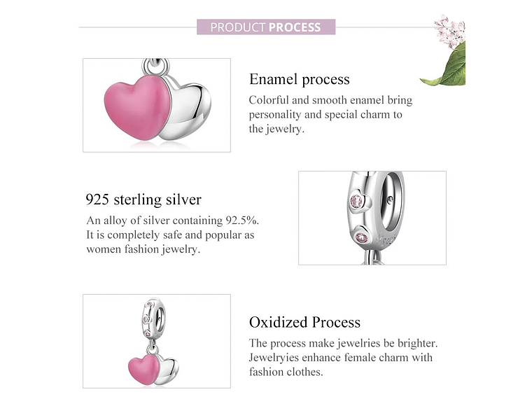 Charm Dije Plata 925 Doble Corazon Rosa Silver