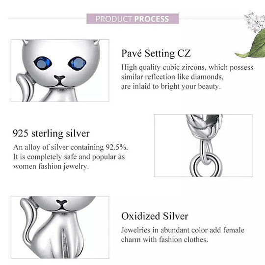 Hermoso, elegante y exclusivo Charm con forma de Gato con Ojos Azules, decorado con hermosos circones de alta calidad y brillo, fabricado en plata 925 excelente calidad y finas terminaciones, incluimos de regalo elegante cajita de regalo estándar totalmente gratis con su compra.