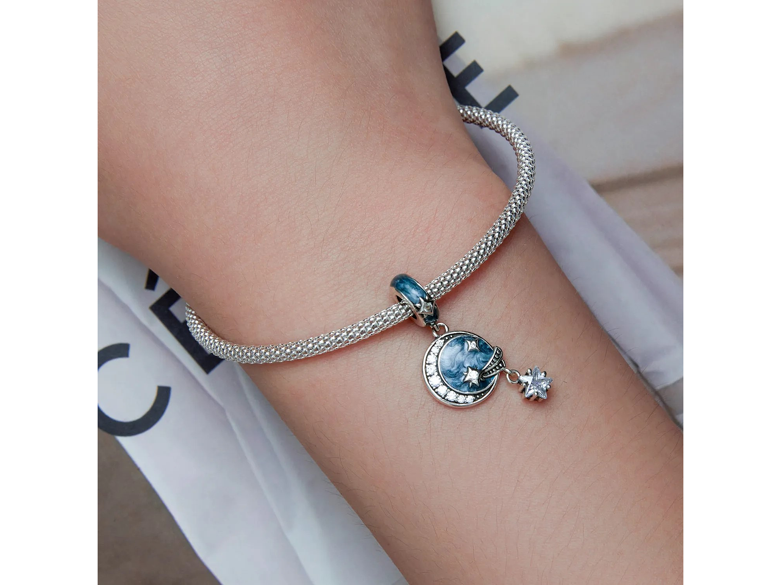 Charm Dije Plata 925 Luna Galaxia Estrellada Azul
