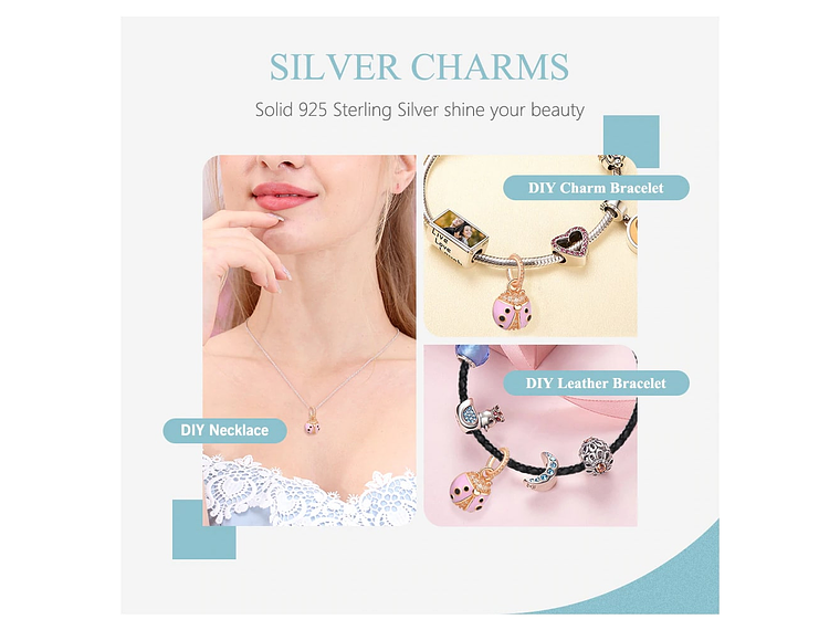 Charm Dije Plata 925 Mariquita Rose Gold