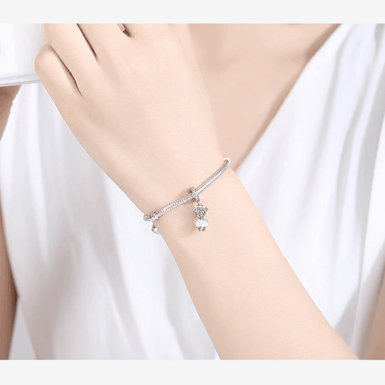 Hermoso Charm colgante con forma de niña o hija con vestido rosado y decorado con hermosos circones de calidad , fabricado en plata 925, excelente calidad y finas terminaciones, incluimos de regalo elegante cajita de cartón totalmente gratis con su compra.