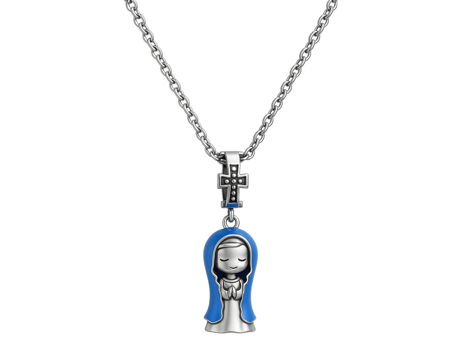 Hermoso y delicado charm con figura de la Virgen María, símbolo de fe, amor y protección. Su diseño moderno y elegante combina detalles finamente elaborados en plata 925 de primera ley con un manto azul esmaltado, que realza su serenidad y pureza. Ideal para llevar en pulseras tipo charm o cadenas, aportando un toque espiritual y de estilo en una sola pieza.