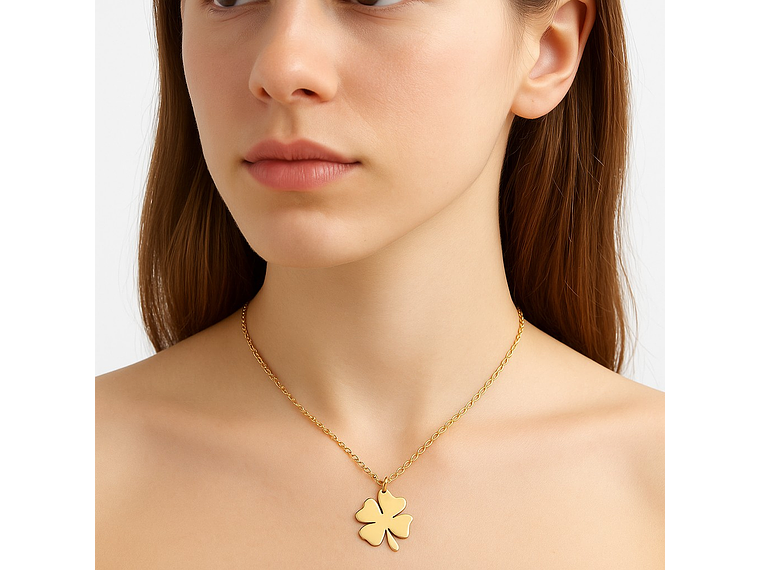Colgante Collar trébol 4 Hojas 1111 Acero Dorado