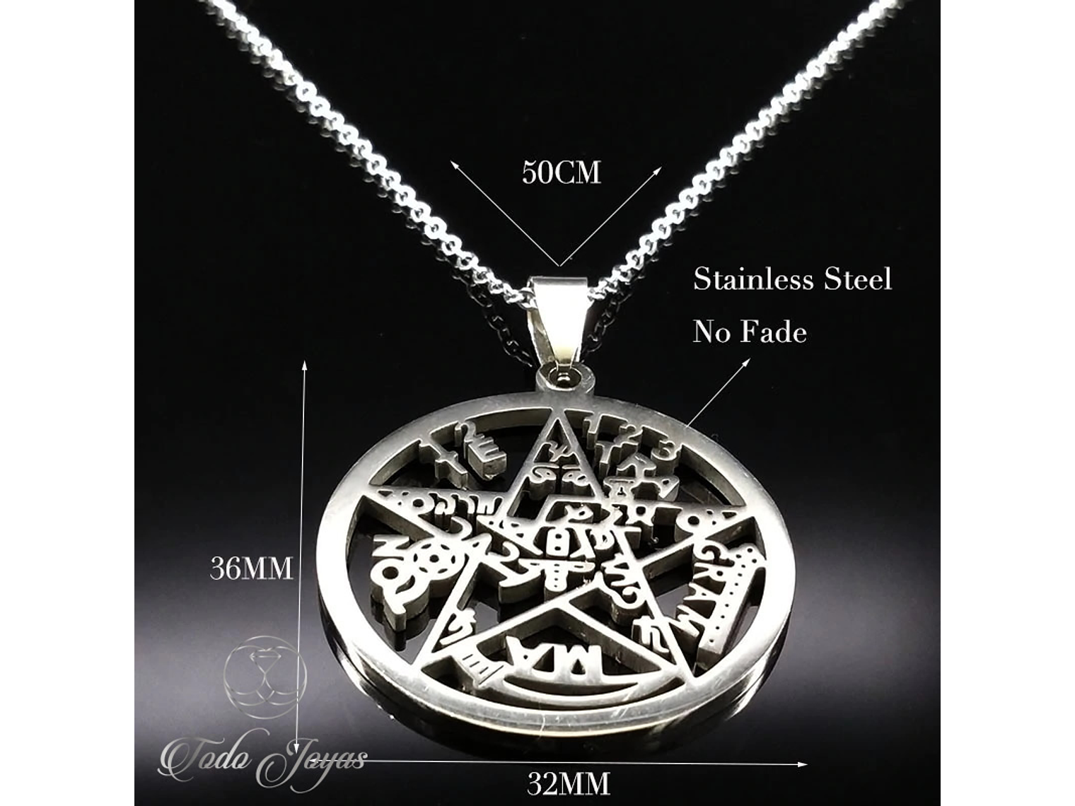 Colgante Tetragramaton Pentagono Acero Con Cadena