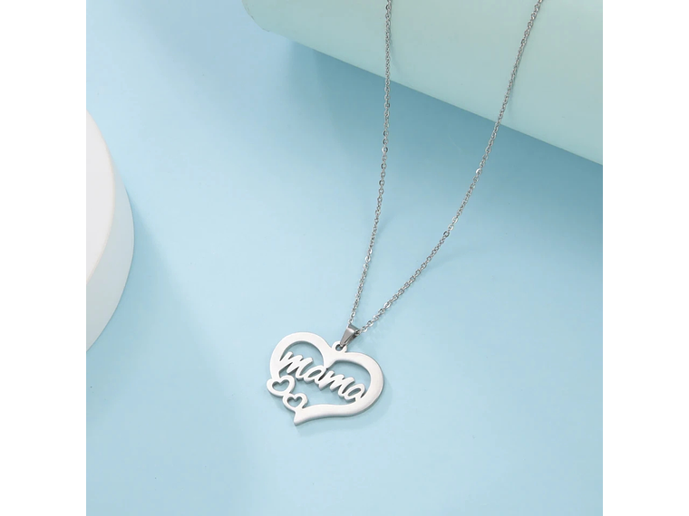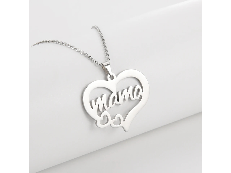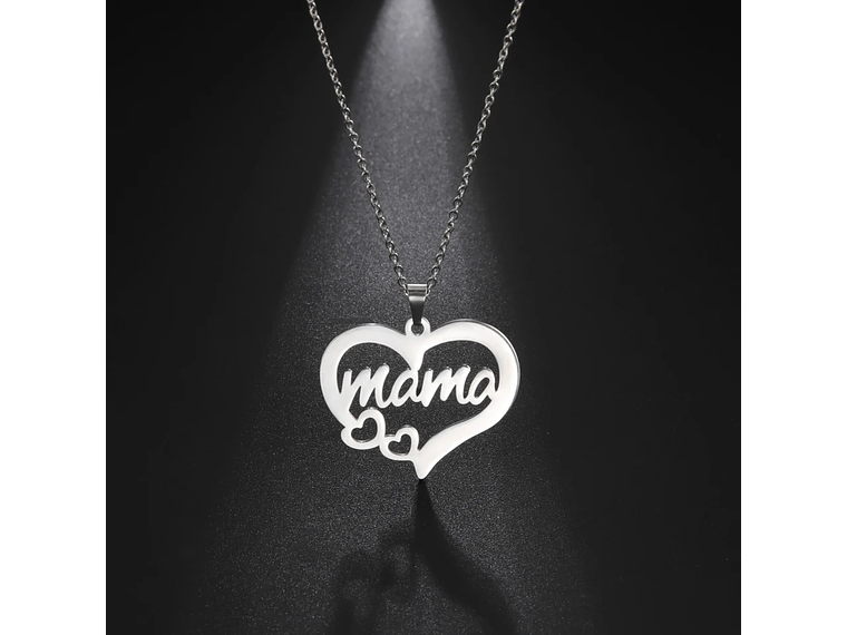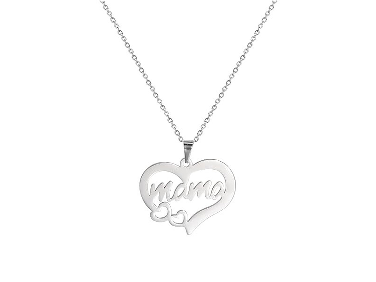 Este elegante collar está fabricado en acero de alta calidad, con una cadena tradicional de 45 cm en color plateado. Su delicado dije resalta la palabra “mamá” acompañada de dos corazones, símbolo perfecto del cariño y la unión familiar.