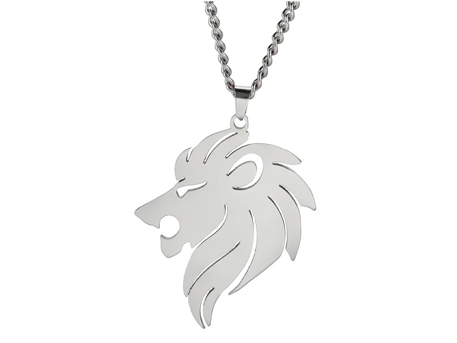 Excelente y exclusivo collar colgante con forma de Cabeza León King Acero en color Plateado de acero inoxidable de alta calidad medida del colgante: 45mm x 34mm, Cadena modelo Grumet de 55cms unisex en acero, incluimos de regalo elegante cajita de cartón para joyas totalmente gratis con su compra.