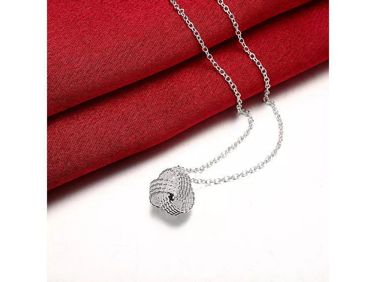 Excelente y elegante collar con forma de nudo plateado bañado en plata 925 de excelente calidad y terminaciones, incluye bañada en plata 925 tipo tradicional de 45cm, incluimos de regalo elegante cajita de terciopelo totalmente gratis con su compra.