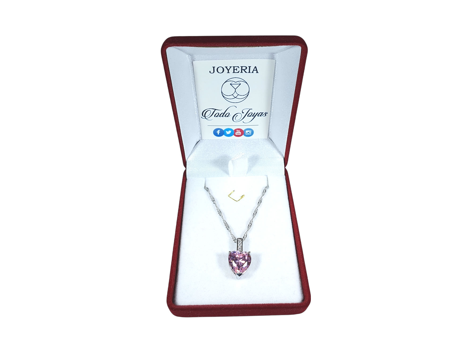 Excelente y elegante collar con diseño de corazón cristal rosa decorada con hermosos circones de alta calidad, incluimos de regalo elegante cajita de regalo totalmente gratis con su compra.