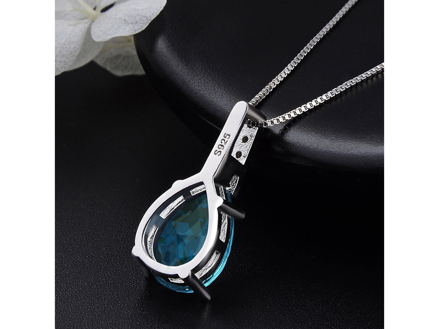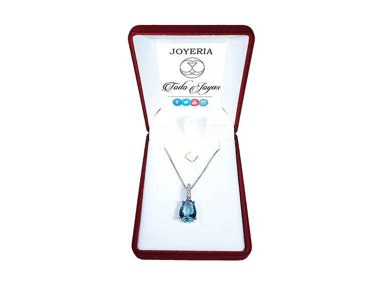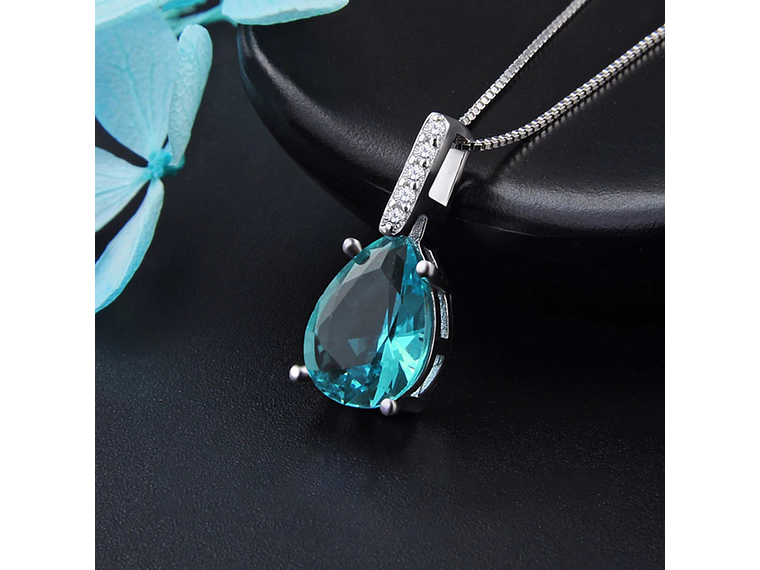 Excelente y elegante collar con diseño estilo gota con cristal austriaco facetado color azul aquamarine, decorado con hermosos circones color blancos de calidad AAA, incluye cadena bañada en plata 925 estilo veneciana de 45cm, incluimos de regalo elegante cajita de regalo totalmente gratis con su compra.