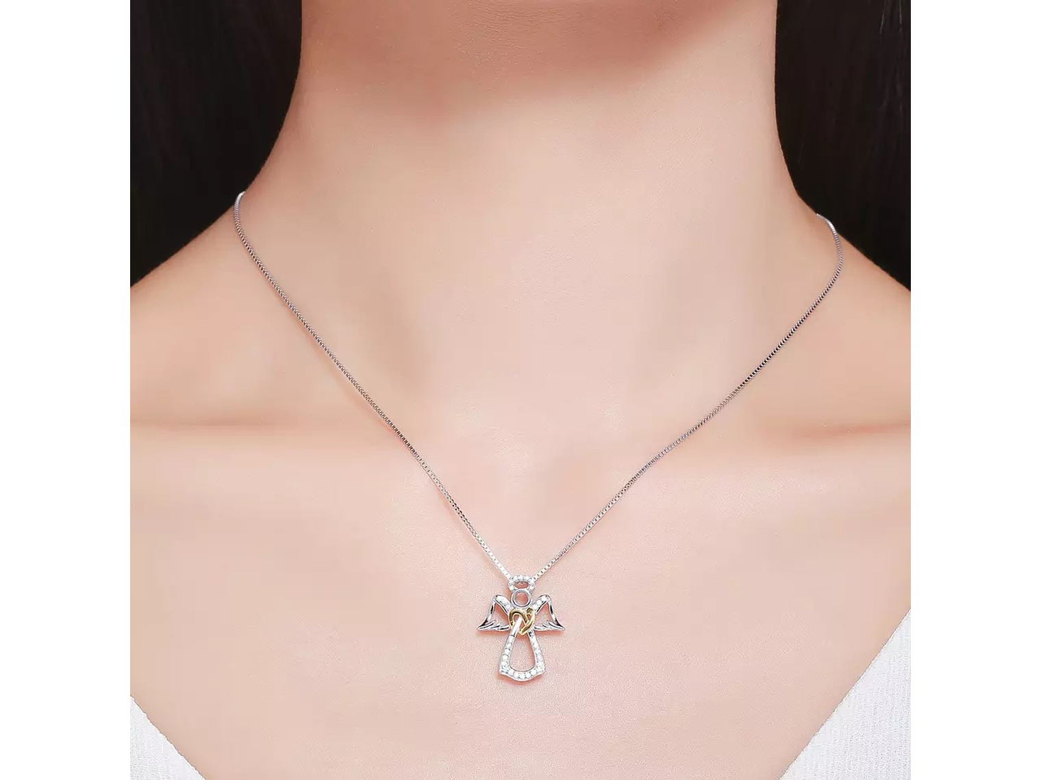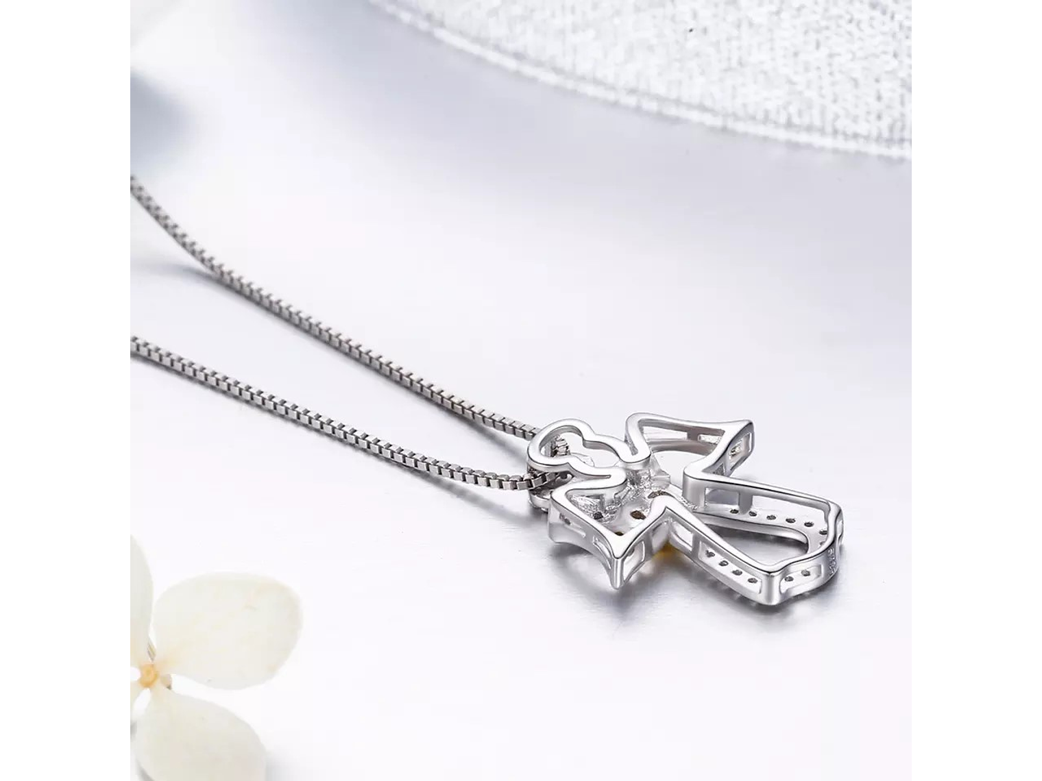 Excelente y elegante collar con diseño de Flor de Ángel Guardián, decorado con hermoso circones blancos, todo en plata 925 terminaciones mejoradas, incluimos de regalo elegante cajita de regalo totalmente gratis con su compra.