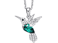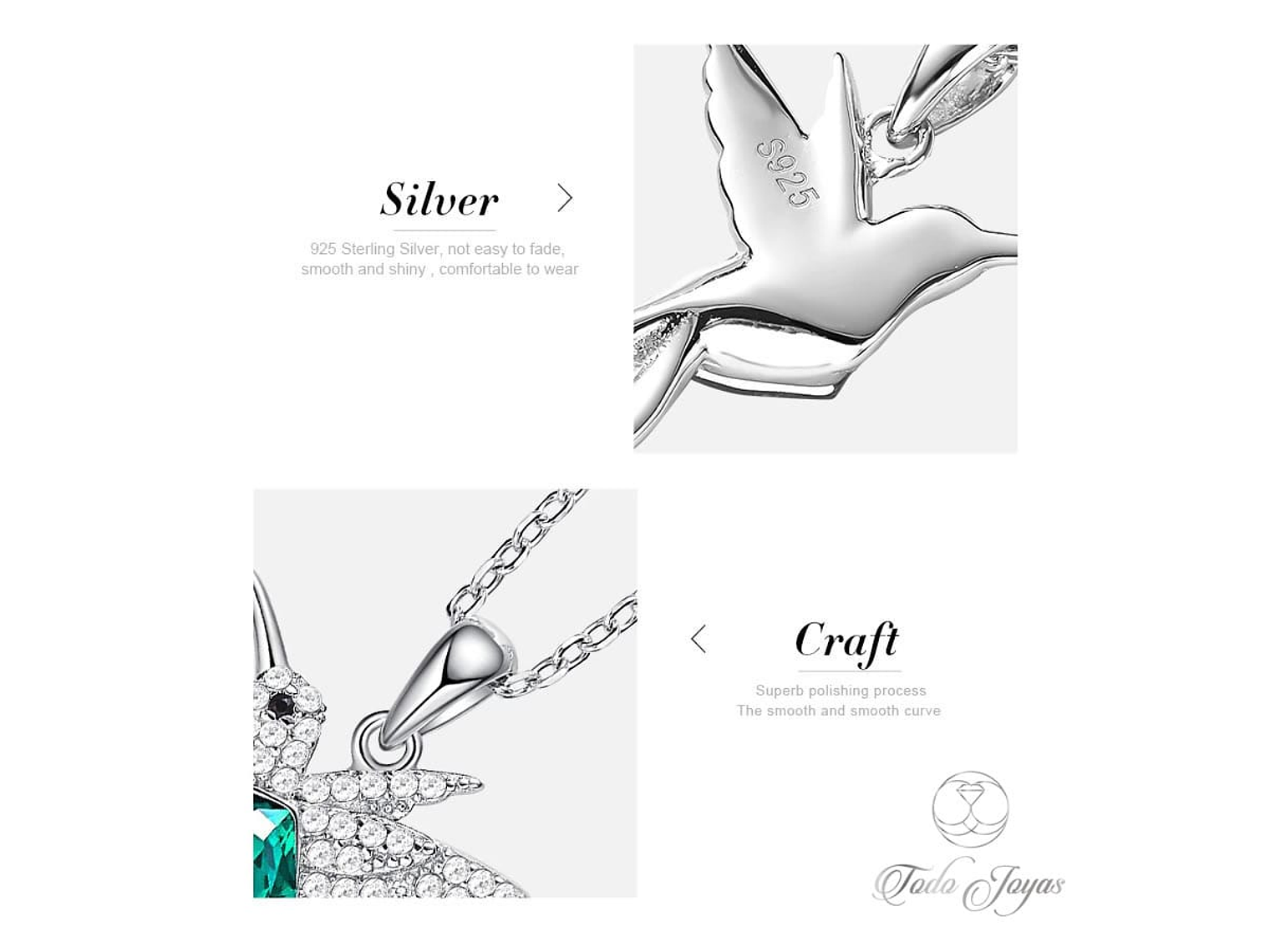 Elegante collar con forma de colibrí fabricado a mano, exclusivo modelo, fabricado en plata ley 925, decorado con circones blancos y cristal austriaco verde de excelente calidad AAA, con cadena tipo eslabones tradicionales de 45cms, incluimos de regalo elegante cajita de regalo totalmente gratis con su compra.
