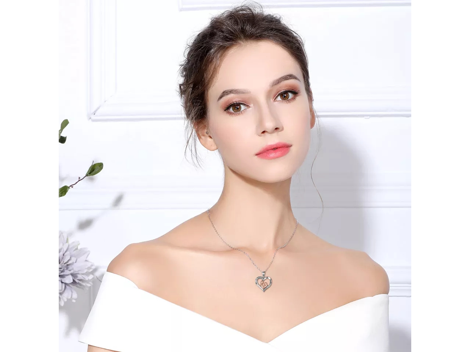 Excelente y elegante collar con diseño de corazón con interior figura de una mujer con perrito en color dorado, todo en plata 925 terminaciones mejoradas, incluimos de regalo elegante cajita de regalo totalmente gratis con su compra.