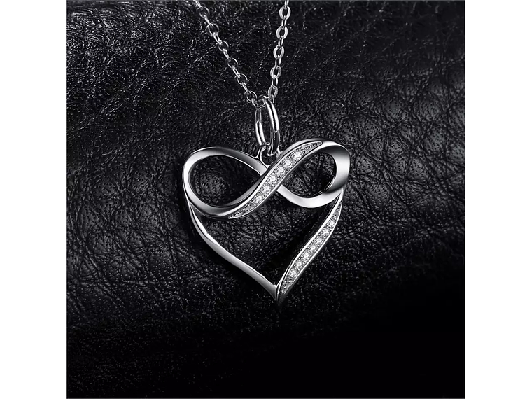 Excelente collar con forma de doble corazón con un infinito en su interior, fabricado en plata ley 925 con cadena tipo Cartier de 45cm, incluimos de regalo elegante cajita de terciopelo totalmente gratis con su compra.