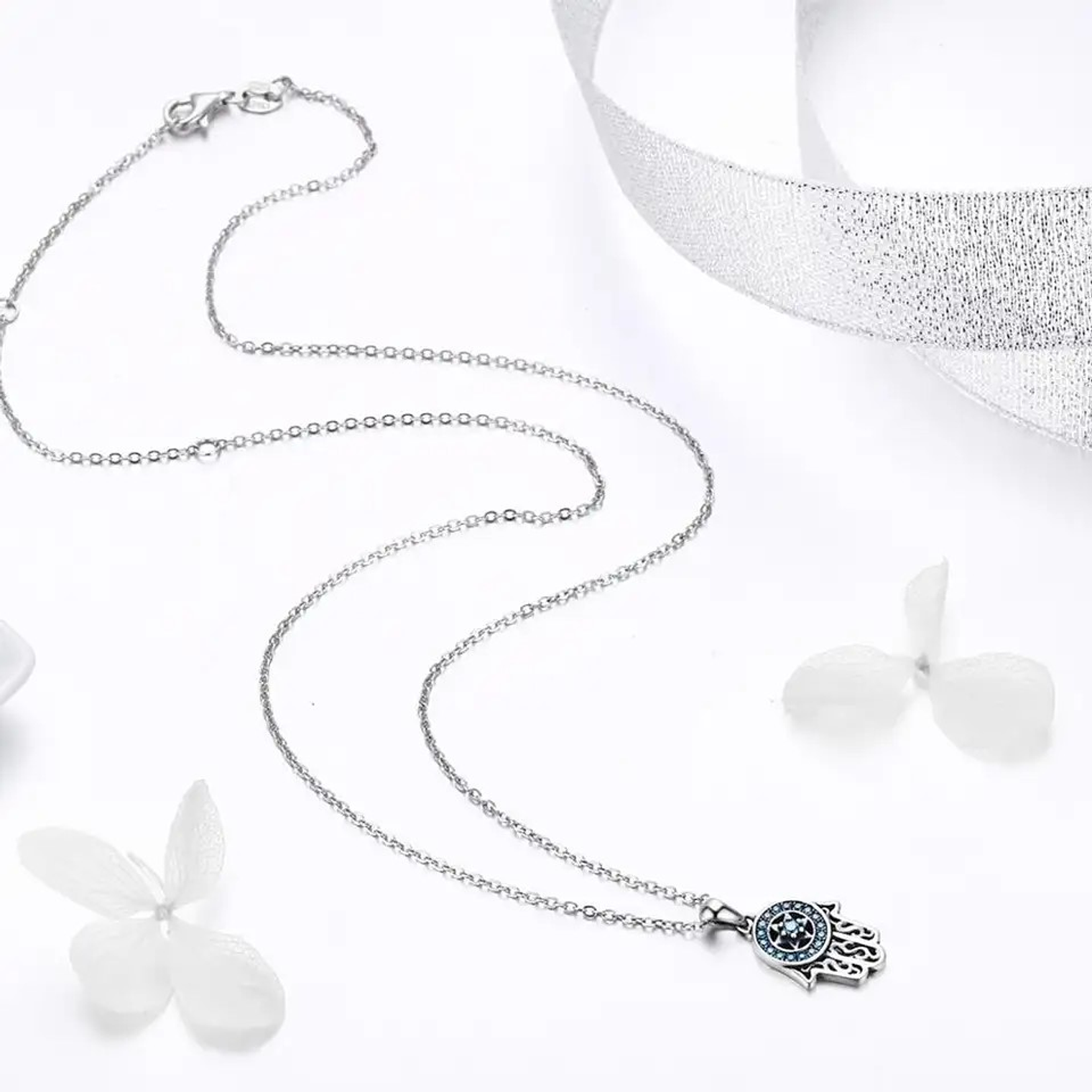Excelente y elegante collar con diseño Hamsa o Mano de Fátima mejoradas terminaciones, incluimos de regalo elegante cajita de regalo totalmente gratis con su compra.