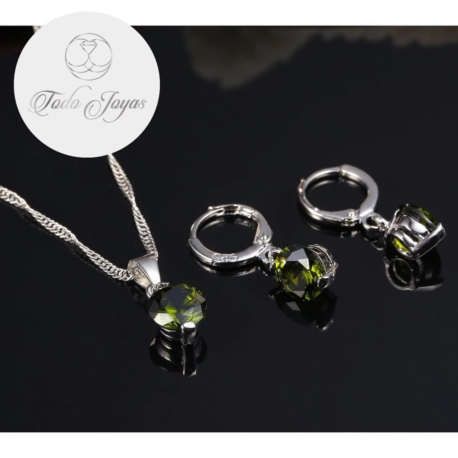 Excelente y elegante conjunto de cristales circulares verdes de alta calidad AAA bañado en plata 925 de excelente calidad y terminaciones, incluye: colgante con cristal morado de calidad AAA y cadena bañada en plata 925 tipo Singapur de 45cm, incluimos de regalo elegante cajita de terciopelo totalmente gratis con su compra.