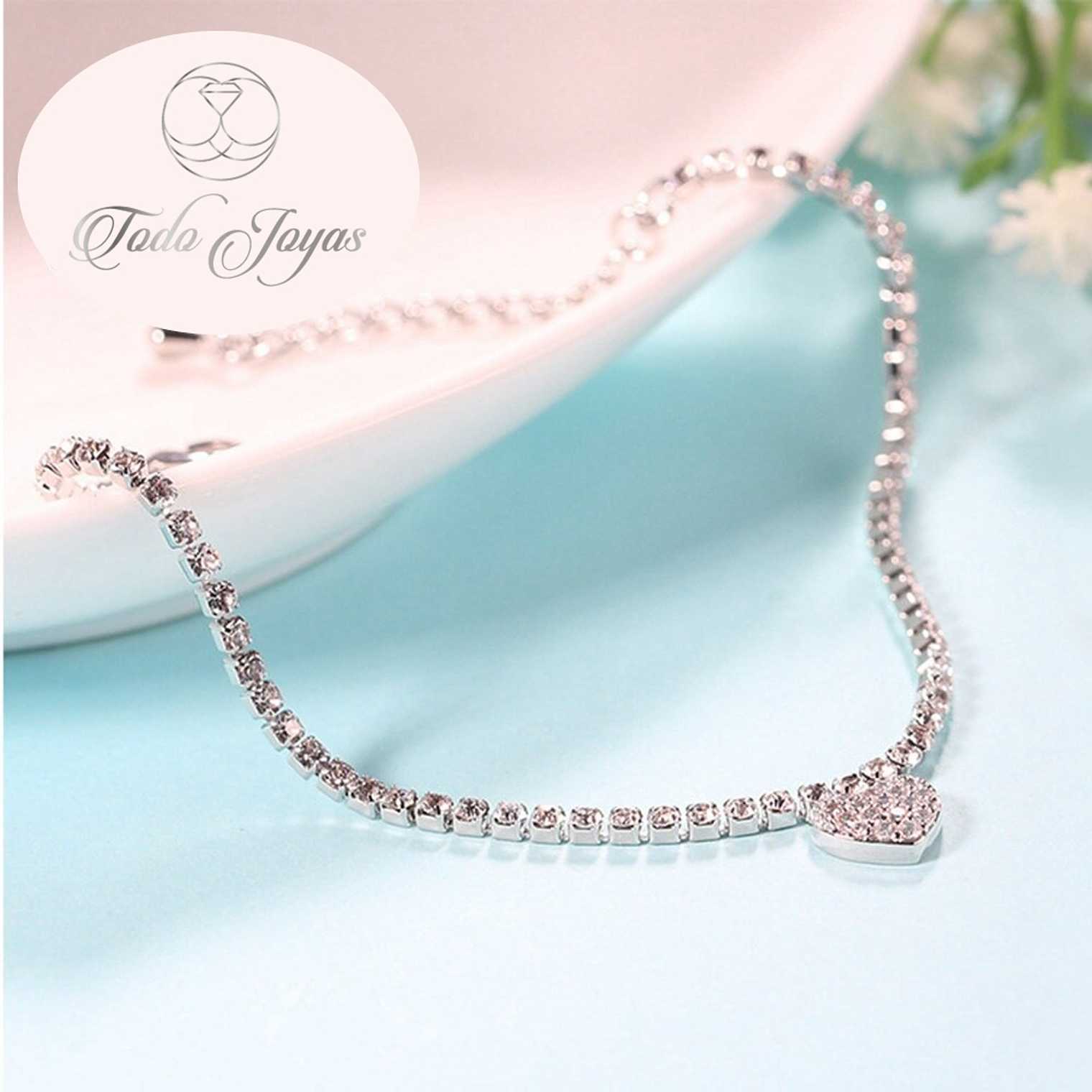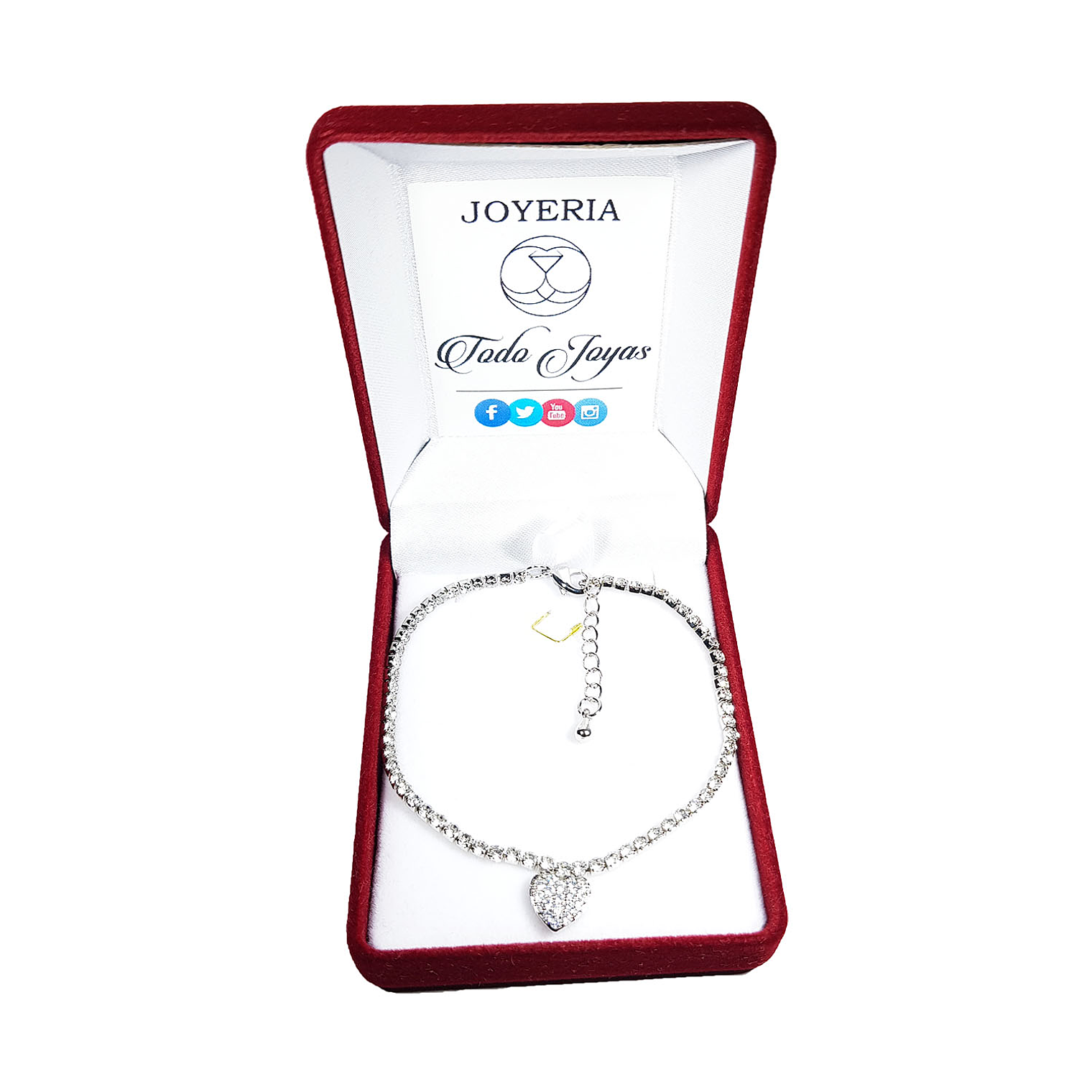 Excelente y elegante pulsera con diseño de corazón decorado con circones blancos de calidad AAA Bañada en plata 925 de excelente calidad y terminaciones, largo de pulsera ajustable hasta 21.5cm, incluimos de regalo elegante cajita de terciopelo totalmente gratis con su compra.