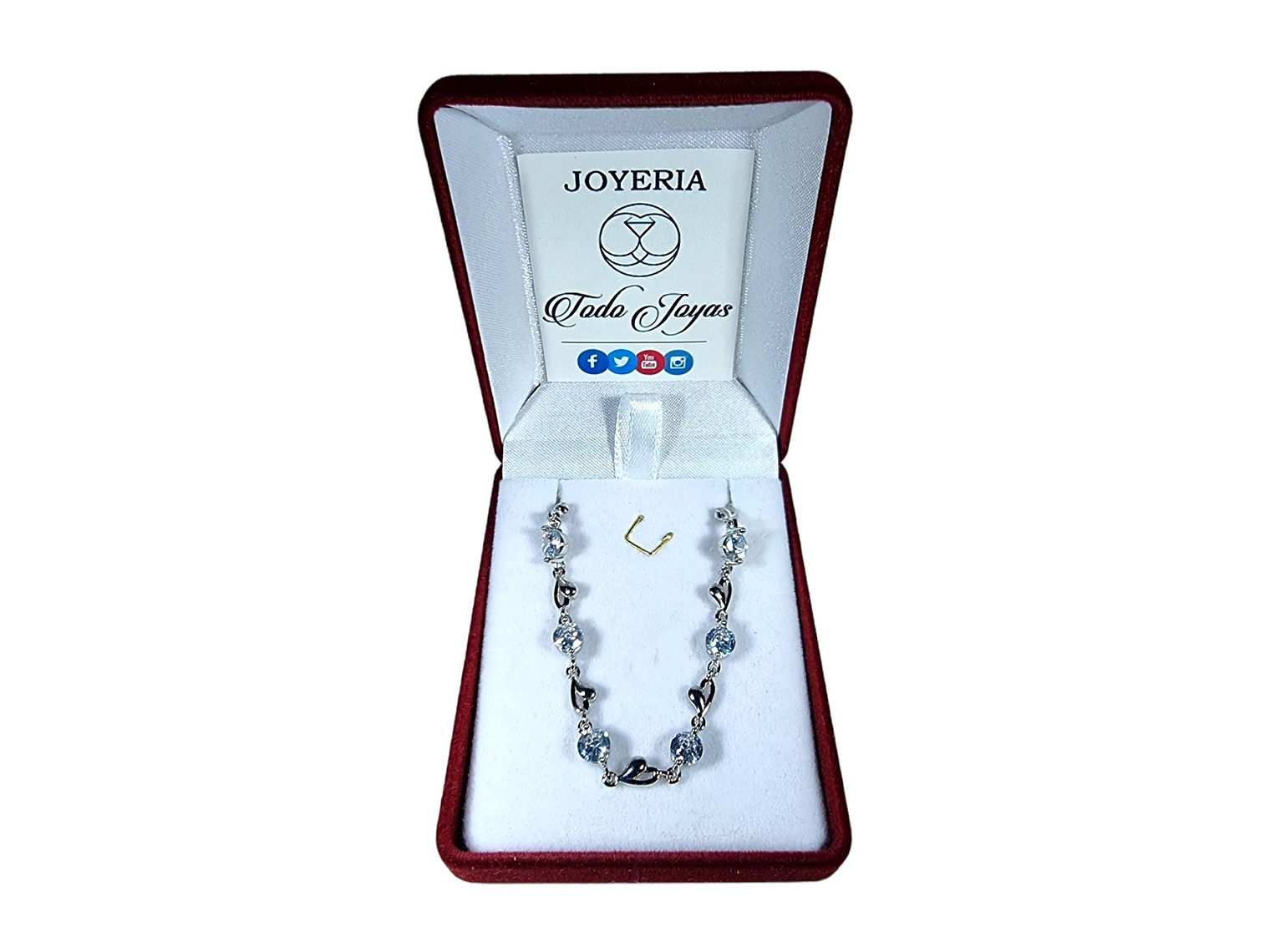 Excelente y elegante pulsera de corazones y circones blancos, Bañado en plata de excelente calidad y terminaciones, largo de pulsera ajustable hasta 19.5m, incluimos de regalo elegante cajita de terciopelo totalmente gratis con su compra.