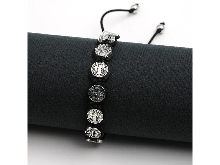 Modelo: Pulsera Hilo Negro San Benito 10 Medallas