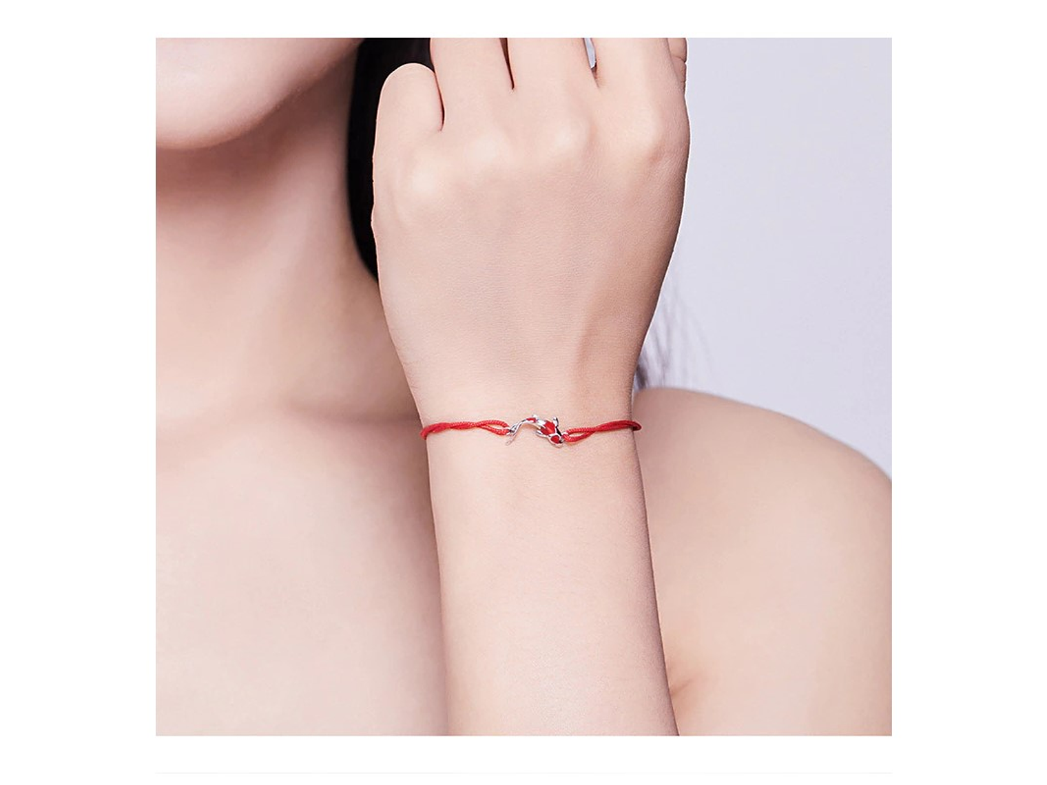 Pulsera Plata 925 Hilo Rojo Pez de la Suerte